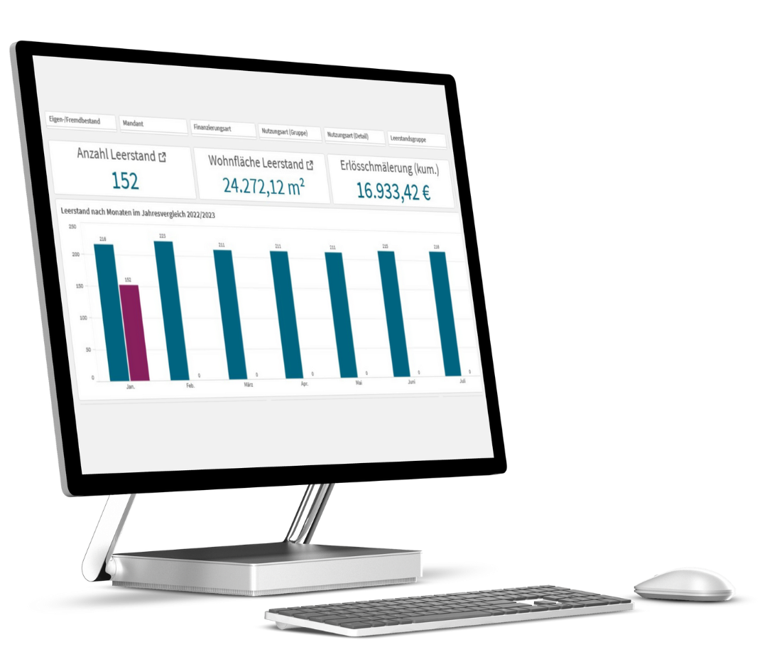 Vermietungskennzahlen, Leerstands-/Fluktuations-/Forderungsanalysen, Mieterstammblatt, Detailanalysen (Sollmieten und Erlösschmälerungen; Kündigungen nach Nutzungsart und Kündigungsgrund; Neuvermietungen nach Nutzungsart; Leerstände nach Nutzungsart, Leerstandsgrund, Wohnungsgröße, Leerstandsdauer; Forderungen nach Vertragsstatus, nach Alter und Zusammensetzung der offenen Posten, nach Mahnstufe und Mahngrund)